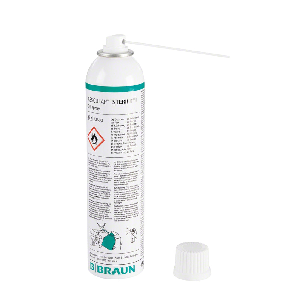 Das Aesculap Sterilit Ölspray wurde speziell für die Pflege von chirurgischen Instrumenten entwickelt. Es schützt zuverlässig vor Korrosion, erhält die Beweglichkeit von Gelenken und verlängert die Lebensdauer der Instrumente – ein unverzichtbares Pflegemittel für jede Sterilgutaufbereitung.