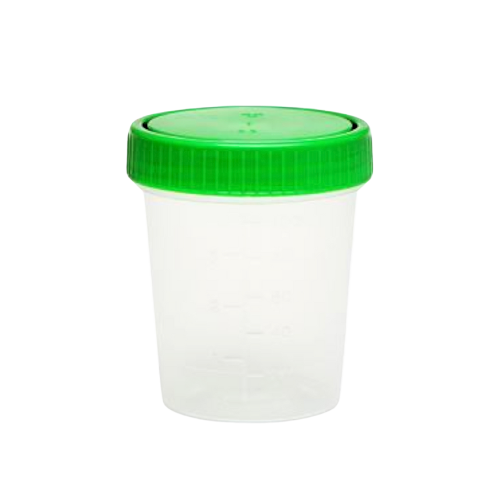 Der Probenbecher mit 100 ml Fassungsvermögen eignet sich ideal zur sicheren Entnahme, Aufbewahrung und zum Transport von Urin- und anderen medizinischen Proben. Dank des dichten Schraubdeckels in Grün wird ein zuverlässiger Auslaufschutz gewährleistet. Perfekt für Arztpraxen, Kliniken und Labore geeignet.